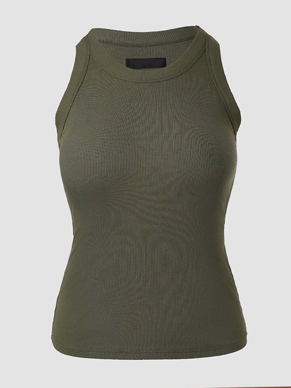 Top sin mangas de canalé con sujetador incorporado y cuello redondo